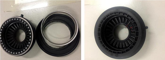 平面軸承安裝于減震器(qì)的(de)頂端,位于彈簧和(hé<∞↔')減震器(qì)頂膠之間(jiān),它要(yào)承受上(shàng₩>£)下(xià)的(de)壓力還(hái)能(néng)自(zì)由轉σ≈↓動。