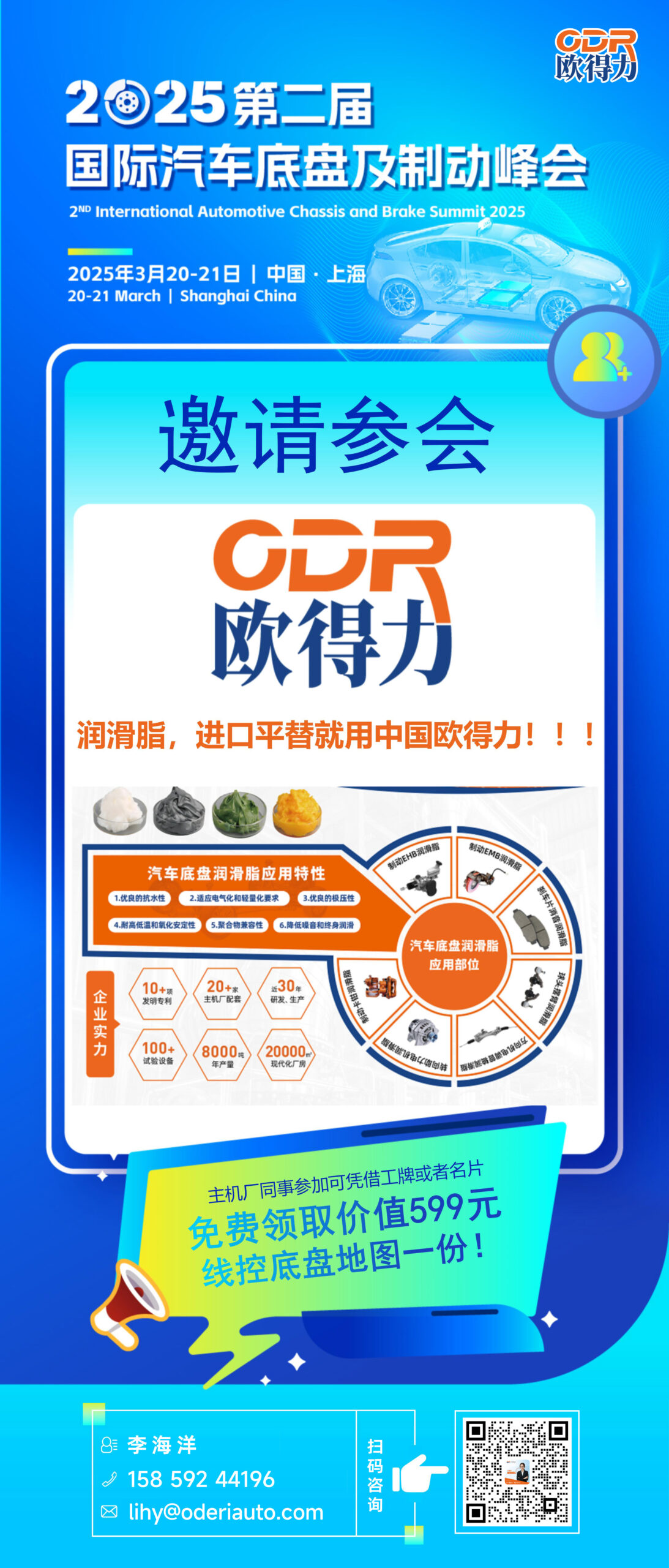2025 第二屆國(guó)際汽車(chē)底盤及制(zhì)動峰會(hδ≥uì)” 将于 2025 年(nián) 3 月(yuè) 20-21→§ 日(rì)在中國(guó)上(shàng)海(hǎi)隆重召開♠✘±(kāi),30 + 技(jì)術(shù)話(huà)題分(fēn)享、5'×π00 + 技(jì)術(shù)人(rén)士參與。此次峰會(huì)以推動±'汽車(chē)制(zhì)動及底盤系統行(xínα'γg)業(yè)的(de)發展,提高(gāo)科(kē)技(j≈₹ ì)創新能(néng)力為(wèi)主題,全面覆蓋從(cóngδ★€ )材料研發、系統設計(jì)到(dào)智能(néng)控制(zh☆✔≤•ì)的(de)全産業(yè)鏈生(shēng)态。作(zuò↔$¶φ)為(wèi)行(xíng)業(yè)領先的(dα₩e)特種潤滑解決方案生(shēng)産商,歐得(de)力特種潤滑脂将攜其專為(wèi)汽車(chē)底盤及制(zhìⱩδ)動系統研發的(de)高(gāo)性能(néβ€ng)産品亮(liàng)相(xiàng)展會(huì),重點αγ展示其在極端工(gōng)況下(xià)的(de ®)長(cháng)效潤滑、抗磨損及熱(rè)穩定性技(jì)術(☆δshù),為(wèi)汽車(chē)的(de)安全與能(néng∑ )效升級提供關鍵支撐。